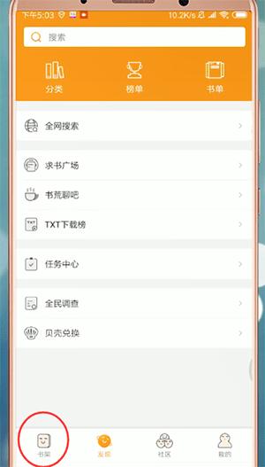 手机打开【小书阁】app,在主页面下方中找到并点击【书架】,进入书架页面