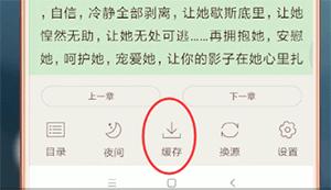 在阅读模式中,单击屏幕,弹出的菜单下方中点击【缓存】