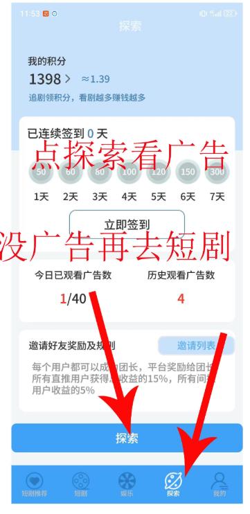 2:广告介绍:探索是接的快手广告(部分手机探索会拉不出快手广告),解锁短剧接的是穿山甲和优量汇,每一条广告左下都有对应平台LOGO。
