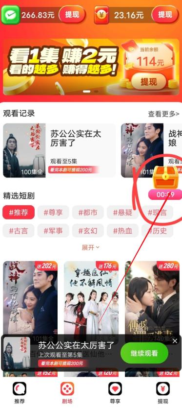 观看广告和短剧:在平台上,用户可以通过观看短剧和广告赚取金b。例如,点开宝箱直接开奖,或者观看广告,每次观看广告都会有几毛钱的收入。用户累计到0.3金b即可进行提取,并且提取速度非常快,秒到账。