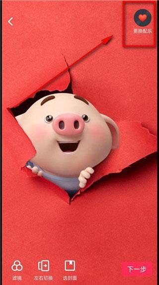 6、我们可以看到右上方就有一个更好配乐的图标,点击【更换配乐】;