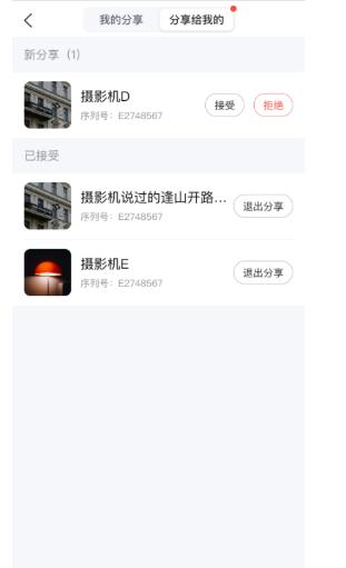在我的-分享设置-分享给我的列表中可以看到所有被分享的设备,如待接收设备,支持进行接收/拒绝操作。