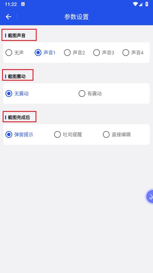 7、可以对截图的一些参数进行设置。如截图声音,截图震动,截图完成后的提示样式。如图所示。