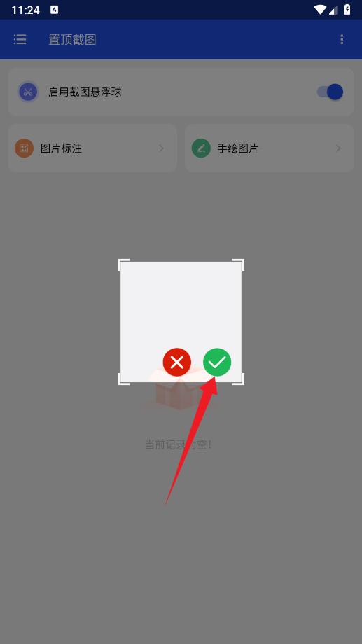 8、然后点击主页的截图悬浮窗,点击截图,如图所示,大家可以自行拖动和框选截图区域,觉得合适了点击【√】完成截图。