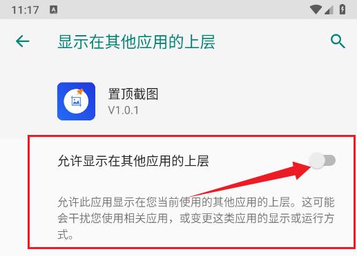 3、然后将“允许显示在其他应用的上层”的控制按钮打开。