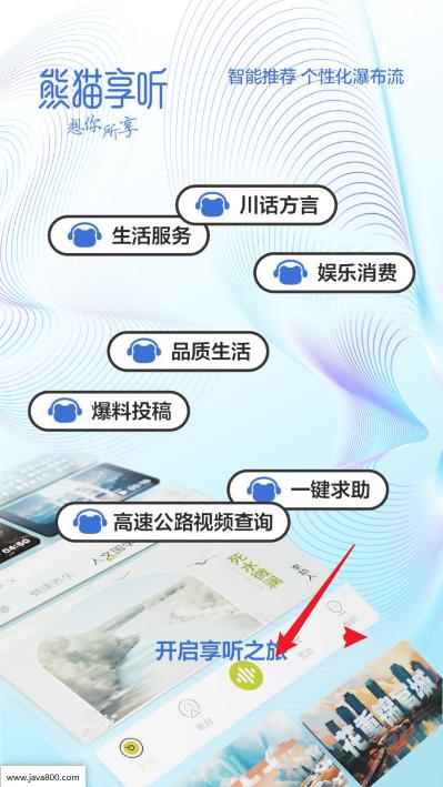 打开App并进入内容区:与收听直播类似,首先进入熊猫享听App。
