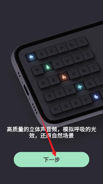 在页面的右下角可以看到几个简单的按钮,按下对应按钮会开启不同的白噪声效果,其中包括机舱声音(如果该声音已在免费或您已购买的声音范围内)。当您触碰这些按钮的瞬间,自然的声音就会开始播放,同时呼吸灯也会开始一呼一吸地闪动。