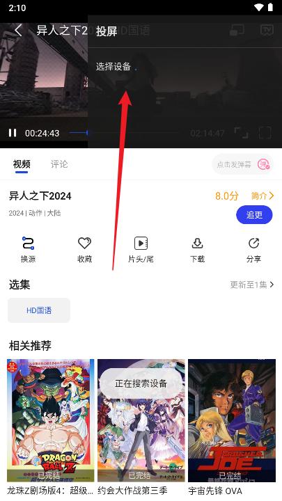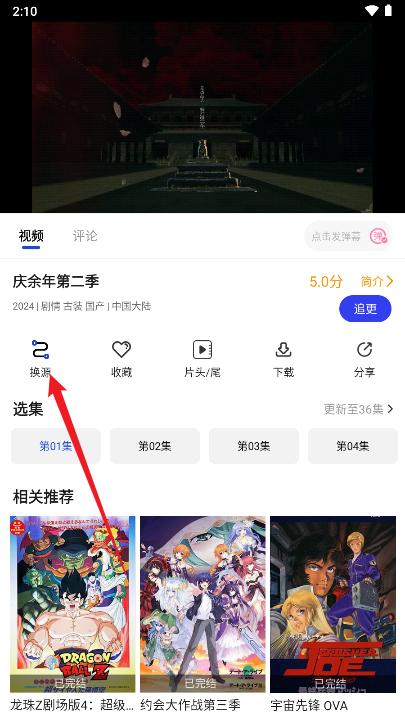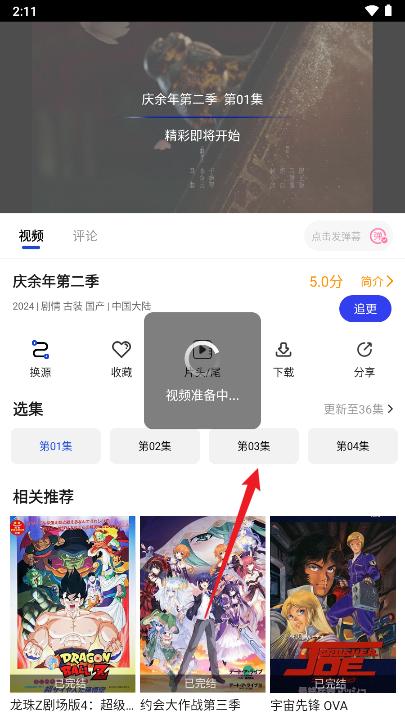 3、打开后选择播放集数即可,如果播放不了继续换源