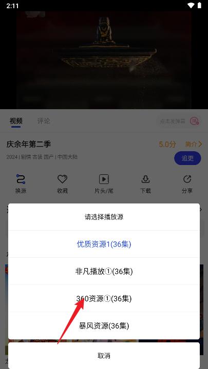1、下载你在播放的视频点击换源