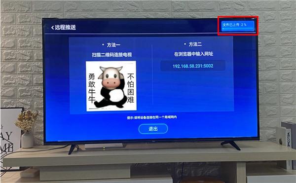 5、投送以后就能在电视上看到进度条,等待投送完成;