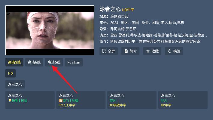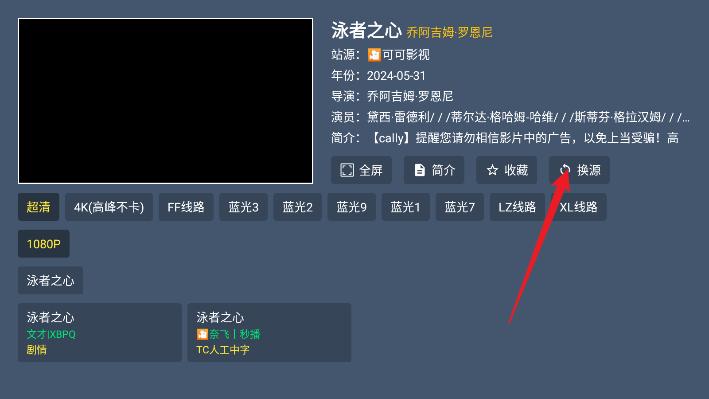 2、然后等待缓存,如果播放不了可以切换源头