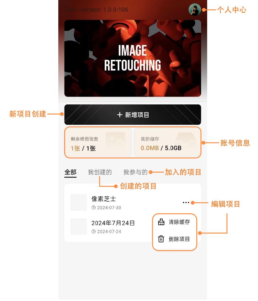 在这里您可以创建新的项目,并对项目进行管理以及查看当前账户信息。