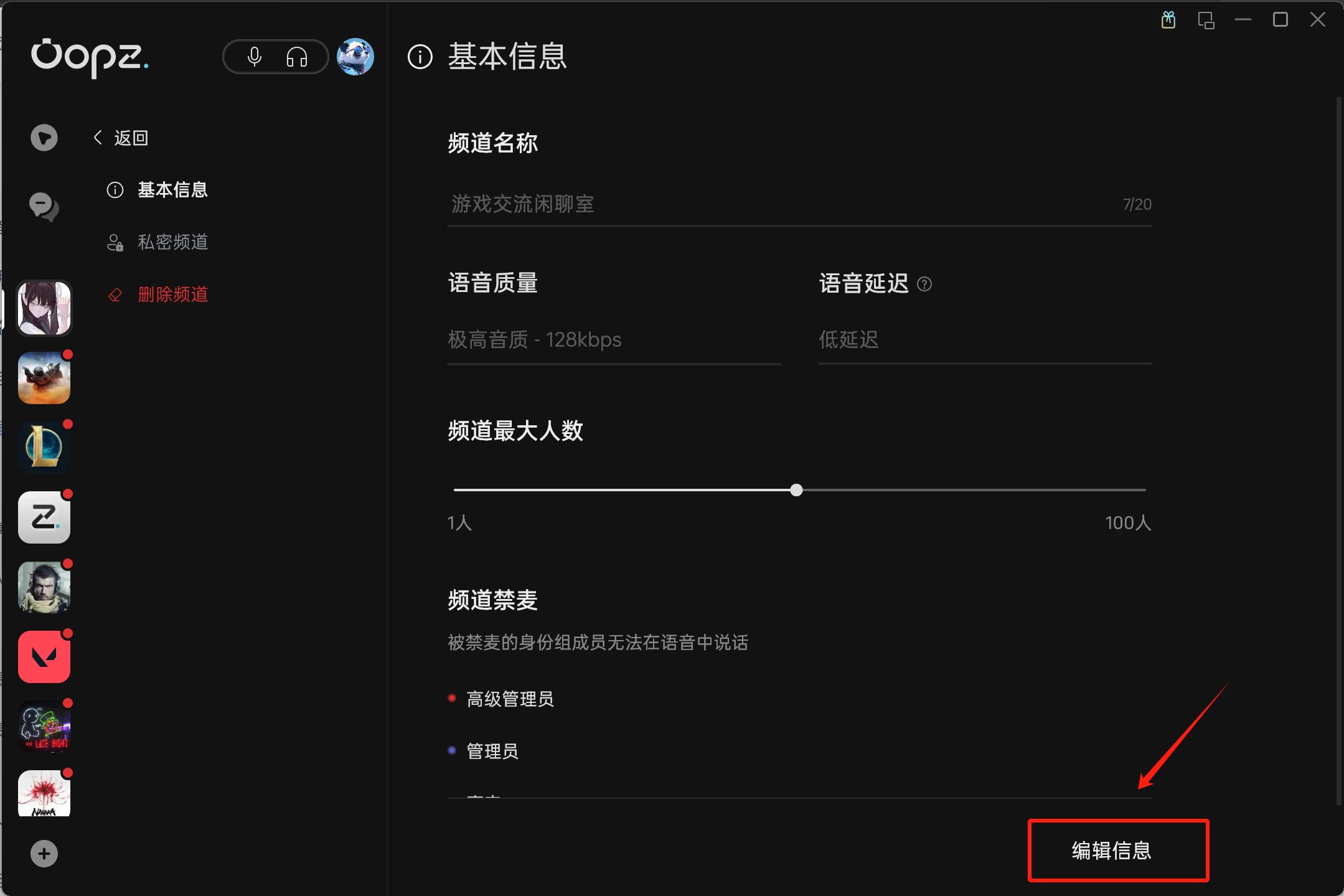 PS:编辑频道需要拥有【管理频道】的权限,设置前请检查你的身份组权限。