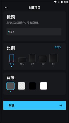 2、点击创造,新建一个视频的项目内容,你可以编辑标题、视频比例以及背景;
