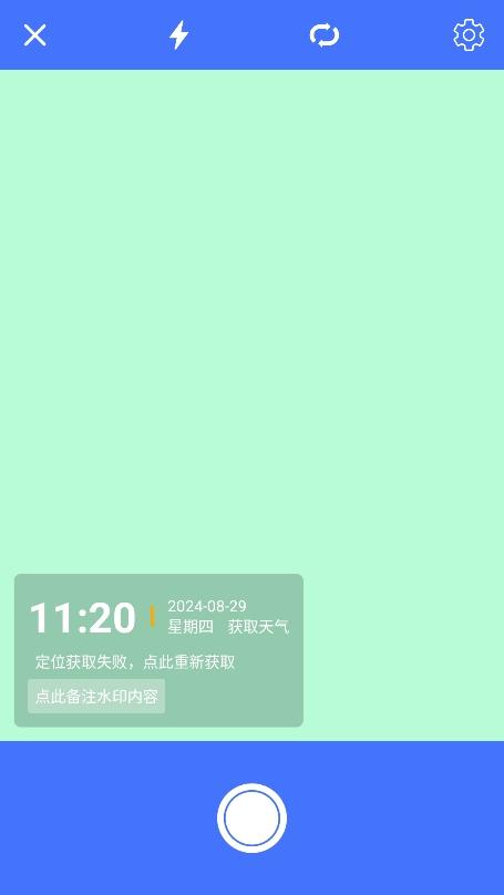 1、授予相机权限,支持快捷水印拍摄,有各种水印元素可选;