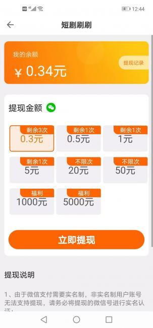 看一下提现说明的介绍,短剧刷刷是业界内极少能做到“赚到即可提现”的APP,最低0.3元可提,已经有很多用户把所得奖励提现成功,不过后面就开始有个条件了,为了保障全体用户利益,对有作弊嫌疑的用户,需要进行好友验证或者活跃度验证,通过后才可以全部提现。