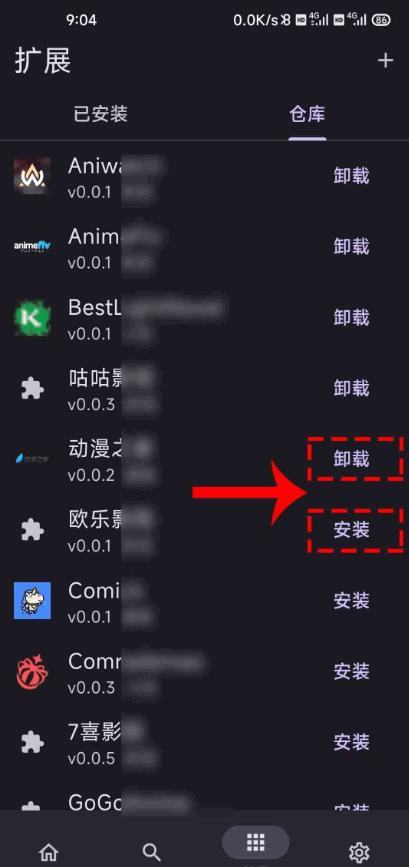 自带的接口提供了插件内容,可自由选择ys、小说和漫画等内容的【安装】。当然,如果想简洁点,随时点击【卸载】。