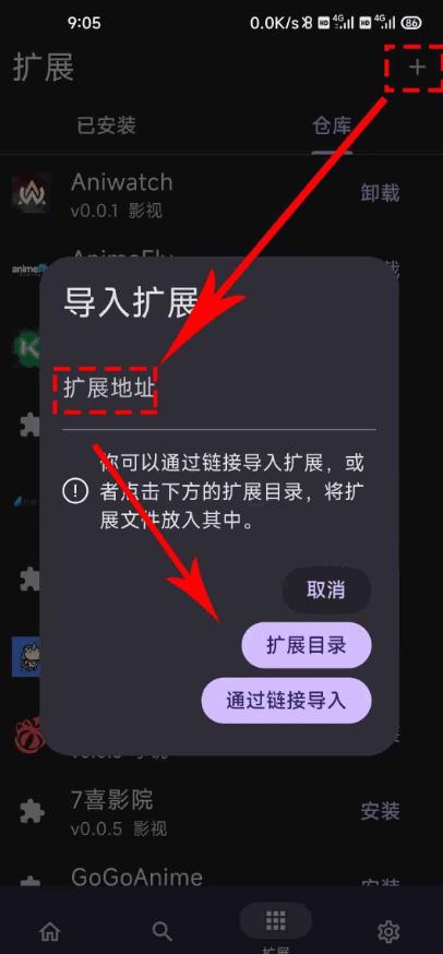 软件也支持导入扩展,如果有更好用接口,可以点击右上角的【+】,选择链接导入。