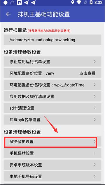 APP保护设置:勾选后防止第三方程序破坏应用,保护设备APP安全