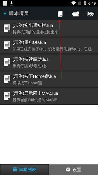 1、首先我们需要打开脚本精灵app,进入页面后就可以点击右上角的写脚本按钮(下图红色箭头所指)