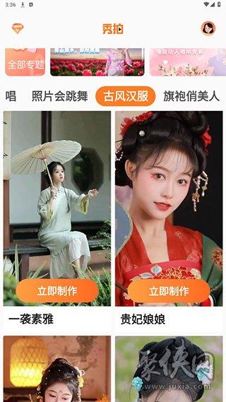 用户点击上方古风汉服,即可进入古风汉服模版界面,可以使用非常多的模版。