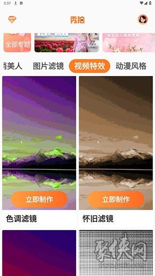 用户点击左上角全部专题,再点击复古特效,即可进行复古特效的模版页面,给图片添加复古特效。