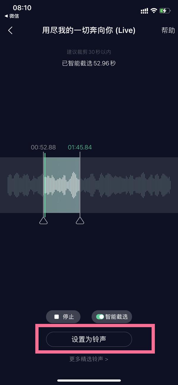 1、用铃声多多打开喜欢的歌曲,制作铃声后,选择【设置为铃声】。