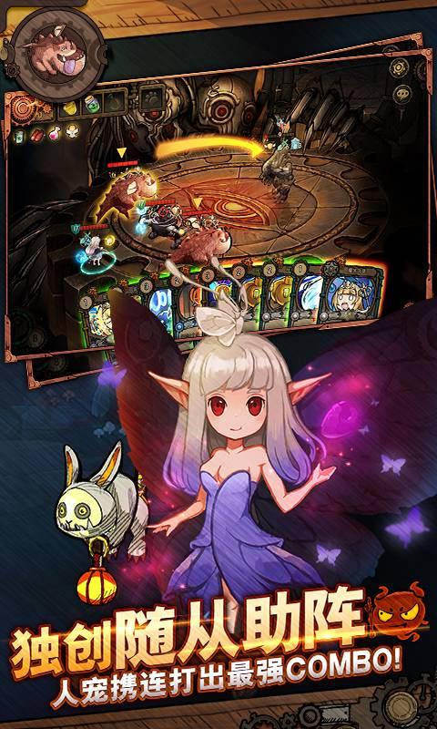 1、游戏采用的是经典的冒险动作卡牌手游,融入了魔幻、童话和roguelike的元素来进行打造,玩家可以携带你的宠物在战斗中打出最强combo,创建属于你的独特助阵。