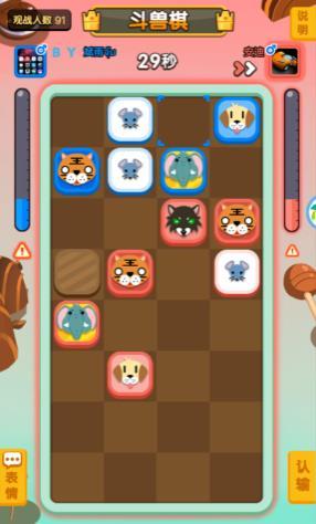 损友斗兽棋游戏下载是一款设计了经典玩法的趣味性棋类游戏,是一部拥有中国经典棋类元素的作品,能让玩家再一次重拾儿时回忆,首先作品中采用的是1对1的对战模式,并且系统会根据玩家当前的段位进行智能匹配为你寻找到棋力相当的对手,游戏中的画面显得非常的清晰,拥有可爱且超萌的卡通形象,这些内容都能让你的每个棋子变得十分的萌,游戏中内容简单有趣,规则也很简单,大象可以吃掉除了老鼠之外的全部动物,而狮子则能吃掉除了大象之外的所有动物,不同的动物一层一层的往下排序,但是最低级的老鼠却可以战胜大象,是一部非常经典的斗兽棋规则,玩家需要充分的控制自己的棋子进行灵活的走位,除此之外还要消灭敌方所拥有的棋子,只有这样你才能在挑战中获得胜利。