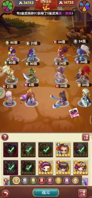 1、完成新手引导,熟悉武将技能和基础战斗操作,收集并培养心仪的武将。