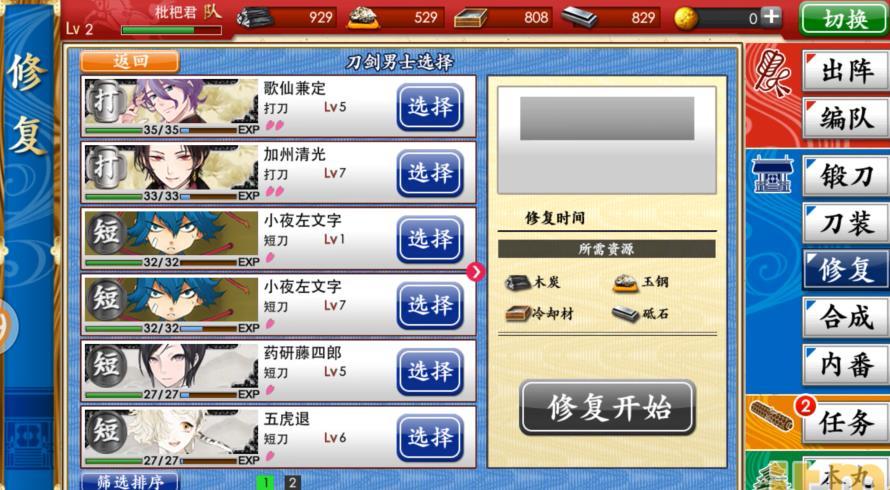 通过合成以及内番提升刀剑男士的四类数值,达到强化刀剑男士的目的。