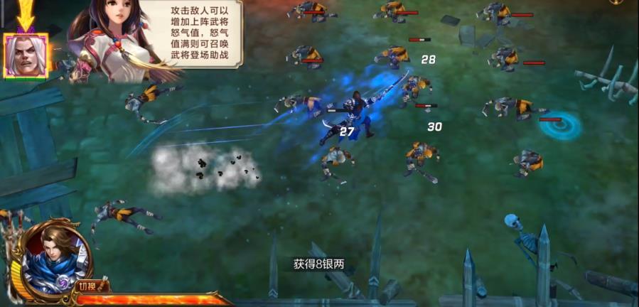2、你要在战斗中看准时机释放武将的技能,还能通过点按触划等手势和武将展开深度交互。