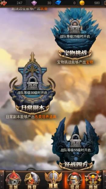 2、逐步推进主线副本解锁更多功能,如角色升星、技能强化等。