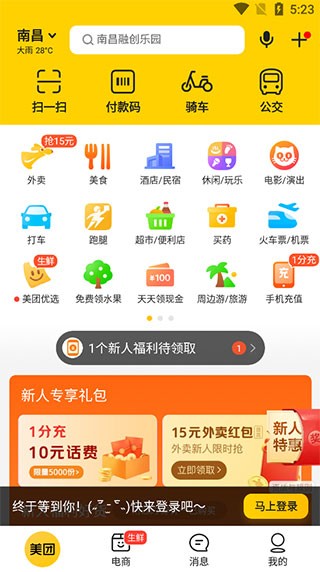 1、首先从本站下载美团官方免费最新版,注册并登录,支持微信、QQ、手机号登录;