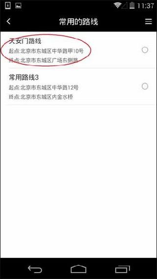 3、 点击五角星图标,展开菜单,选择常用的路线;