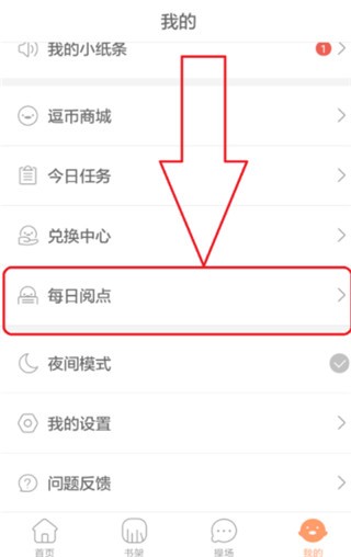 2、第二种方法是每日阅点。在“我的”页面下,有一个“每日阅点”图标,点击进去就可以领取每日的阅点。如图所示。