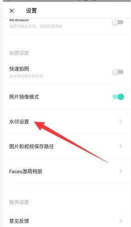 4、进入到相机设置界面后,滑动界面找到“【水印设置】”的选项,点击进入