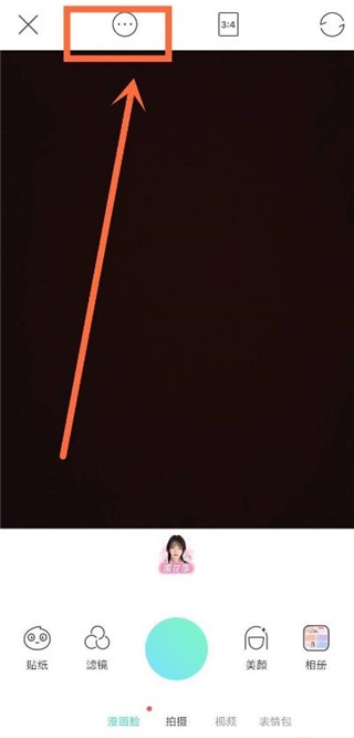 3、进入拍照界面后,点击上方的【…】图标进入。如下图所示