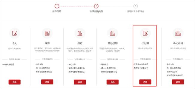 3、请小记者家长在“选择主体类型”中点击选择“小记者”。