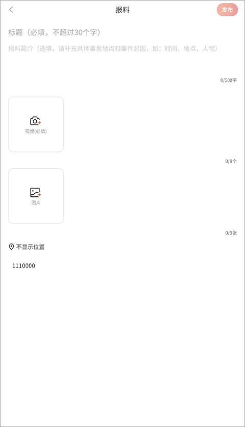 3、填写你要报料内容、以及相关视频,图片,点击发布即可。