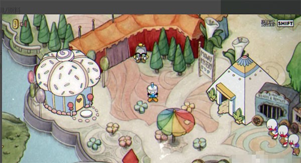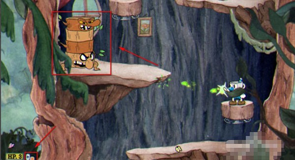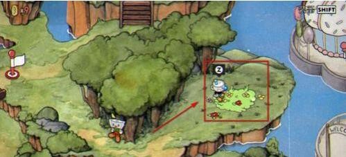 4、接着,在这里和茶杯头老爷爷对话,靠近它按下A键(跳跃键);