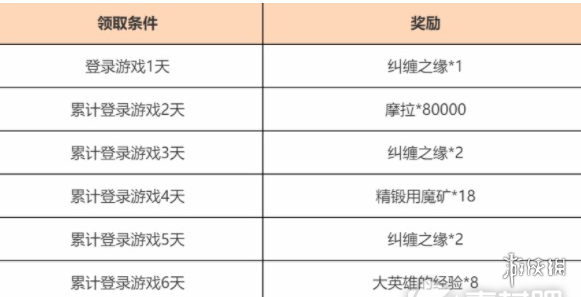 2、活动规矩:在这个活动期间,玩家们只需累计登陆的七天就可以取得精锻用魔矿、大英雄的经历以及纠缠之缘等等的奖励。